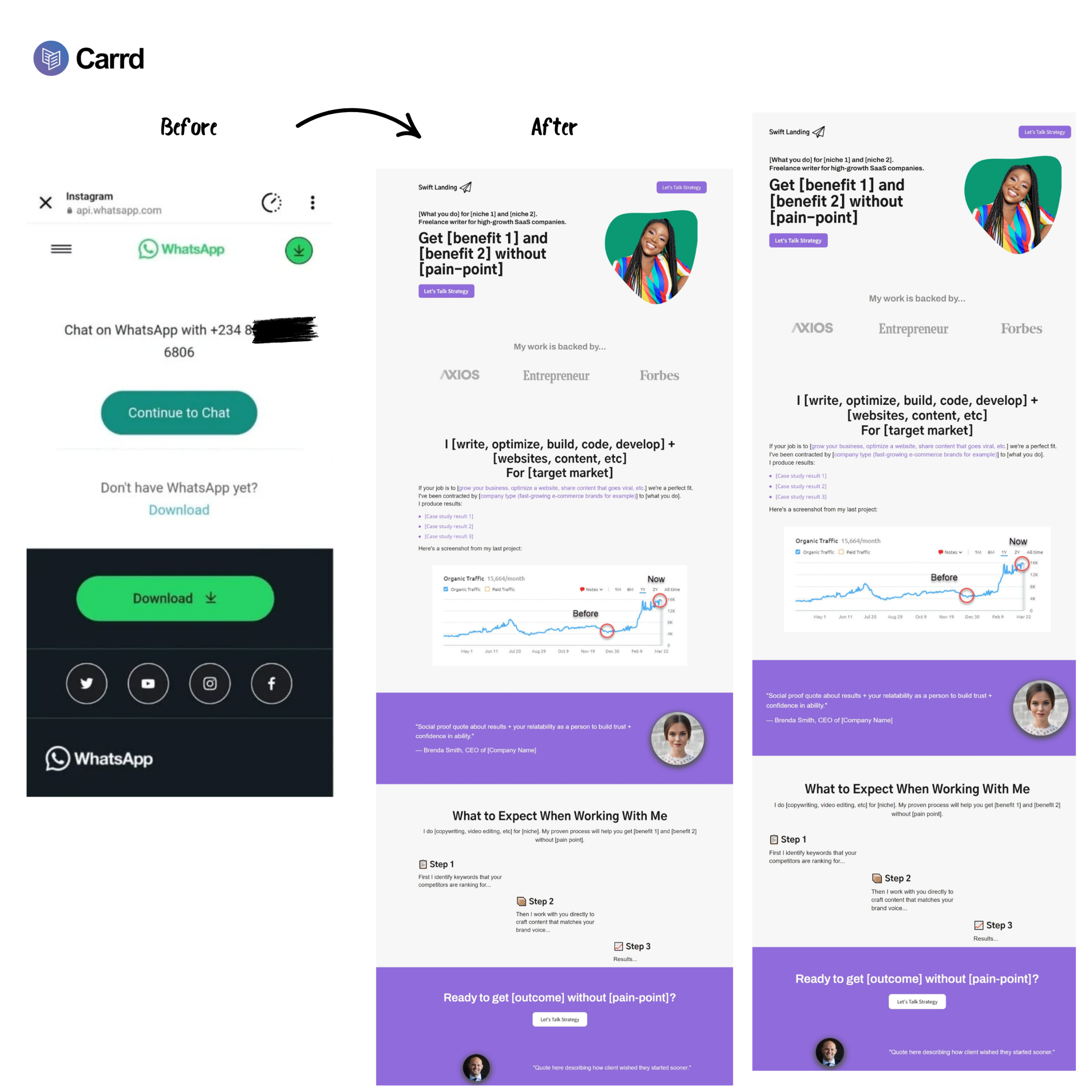 Hi, I'm Okwunna Olive. - landing page designer since 2021.I got tired of seeing ugly looking, low converting carrd sites, so I spent hours learning copywriting and design principles with carrd, elementor and systeme.io.Now that I know what works when it comes to conversions, I'm here to help you grow your profits using my tried and tested principles.