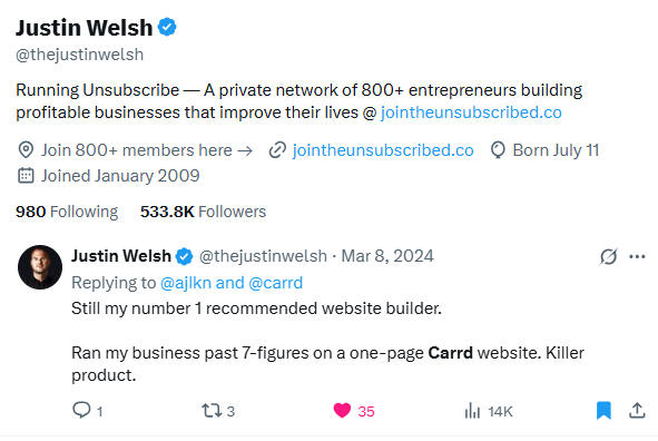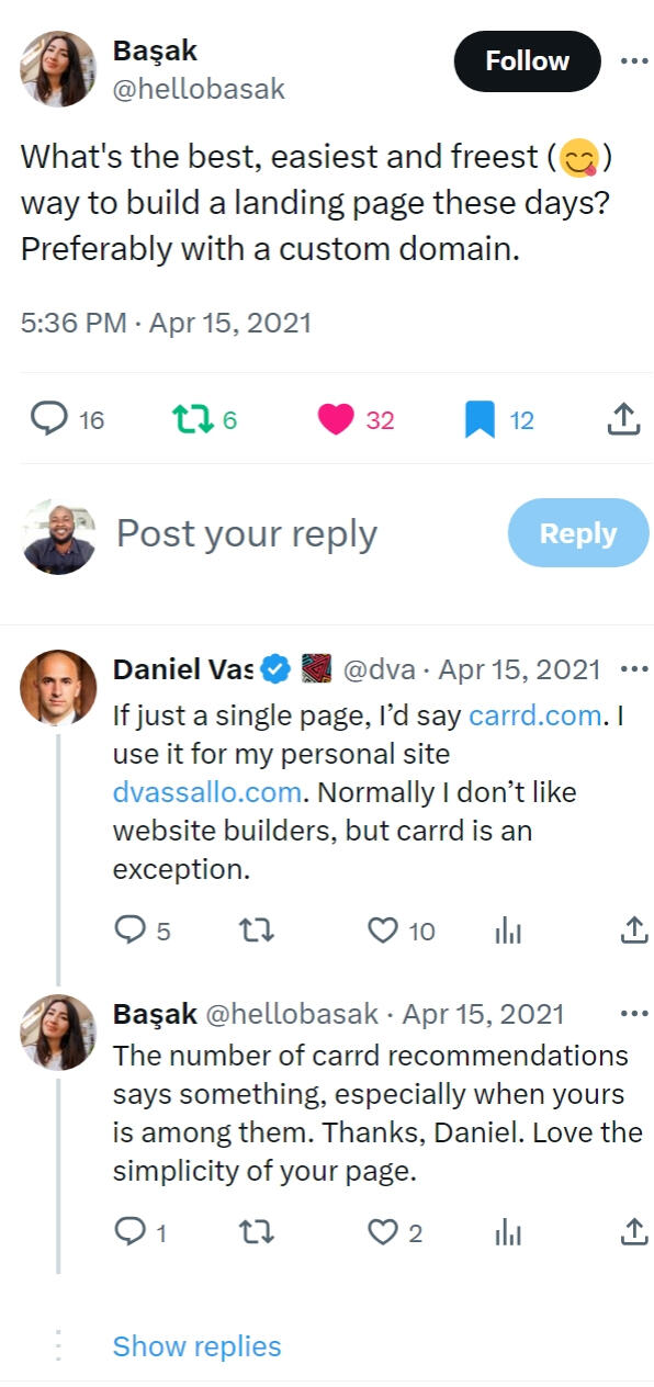 Even top creators recommend getting at least a one-page website on Carrd.