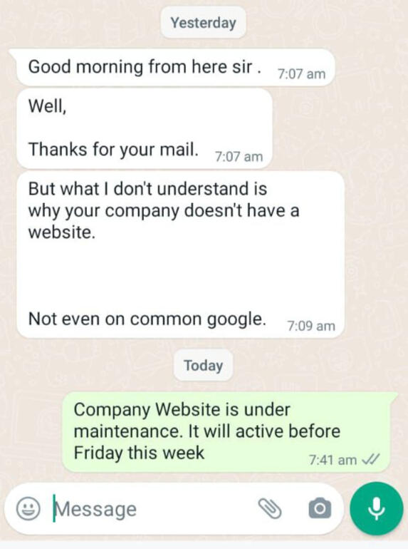So if your business is still running off Facebook/ IG, word-of-mouth, and WhatsApp, but no website at all — you’re missing jobs.